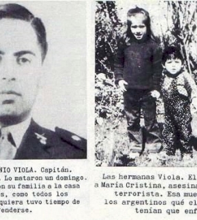 "Ese domingo 1º de diciembre de 1974, el capitán Humberto Antonio Viola y su mujer María Cristina Picon, salieron a media mañana de su casa, acompañados de sus dos hijitas: María Fernanda, de cinco años, y María Cristina, de tres. Primero asistieron a misa y cerca del mediodía enfilaron con dirección a la casa de los padres del capitán, donde los aguardaban para almorzar. No eran los únicos que los esperaban. Once guerrilleros del ERP estaban apostados para asesinar al capitán, ...