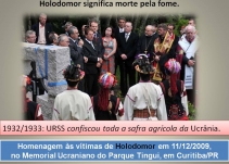 2009HOMENAGEM ÀS VÍTIMAS DO HOLODOMOR - UCRÂNIALeia Mais +O Ministro da Cultura da Ucrânia, Vasyl Vovkun, inaugurou monumento em homenagem às vítimas de Holodomor em 11/12/2009, no Memorial Ucraniano do Parque Tingui, em Curitiba.